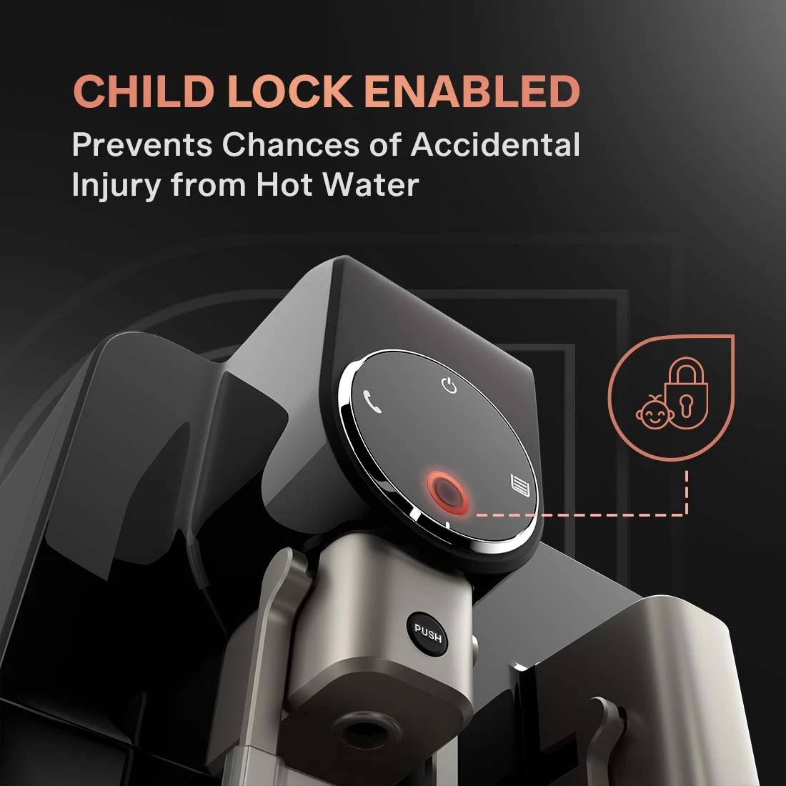 Child Lock: Reduces the risk of accidental burns or injuries from hot water.