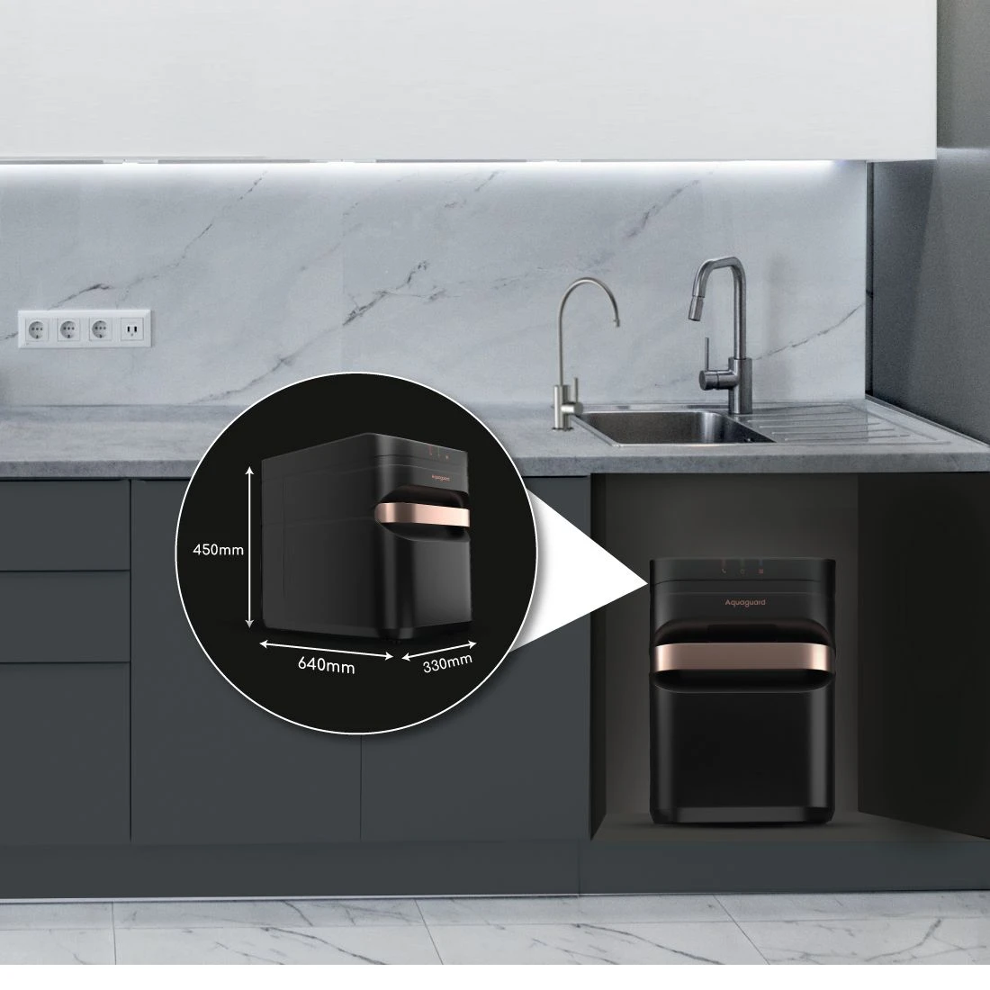 The Aquaguard Designo NXT Under the Counter RO+UV has an integrated, single-unit design, unlike other UTC purifiers that come with two separate units.