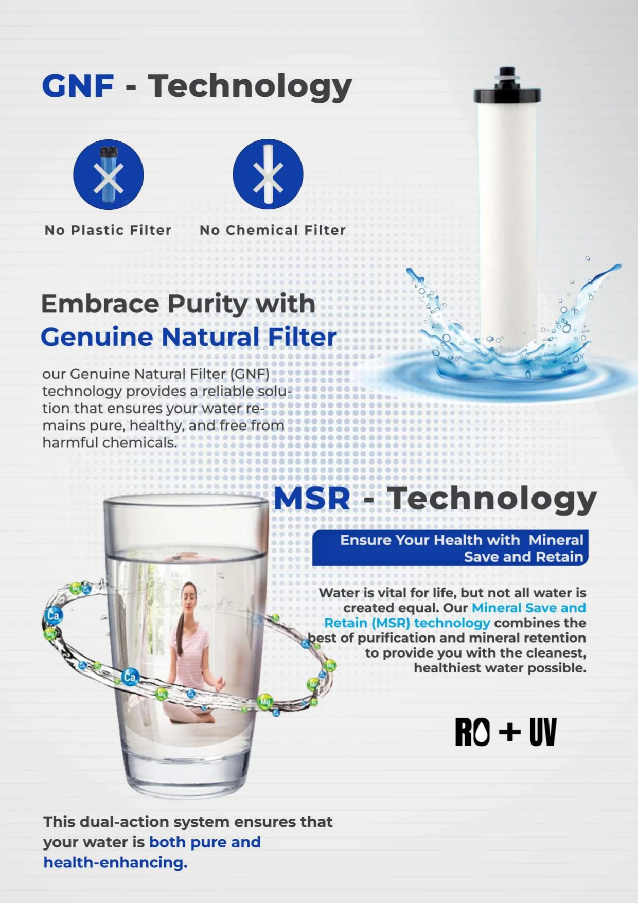 WSP Technology Our Water Save Process ensures minimal water wastage during purification, making it an eco-friendly choice for the environmentally conscious consumer.