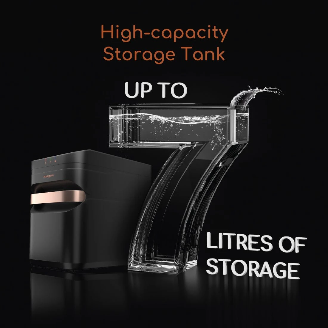 - Superior Design - The water purifier stands out with its integrated, single-unit design, unlike other under-the-counter models that come with two separate units. It features wheels and a grip handle, making movement and accessibility easy. It’s also compatible with double-door refrigerators and offers a high storage capacity of 7 litres, ensuring an ample supply of purified water.